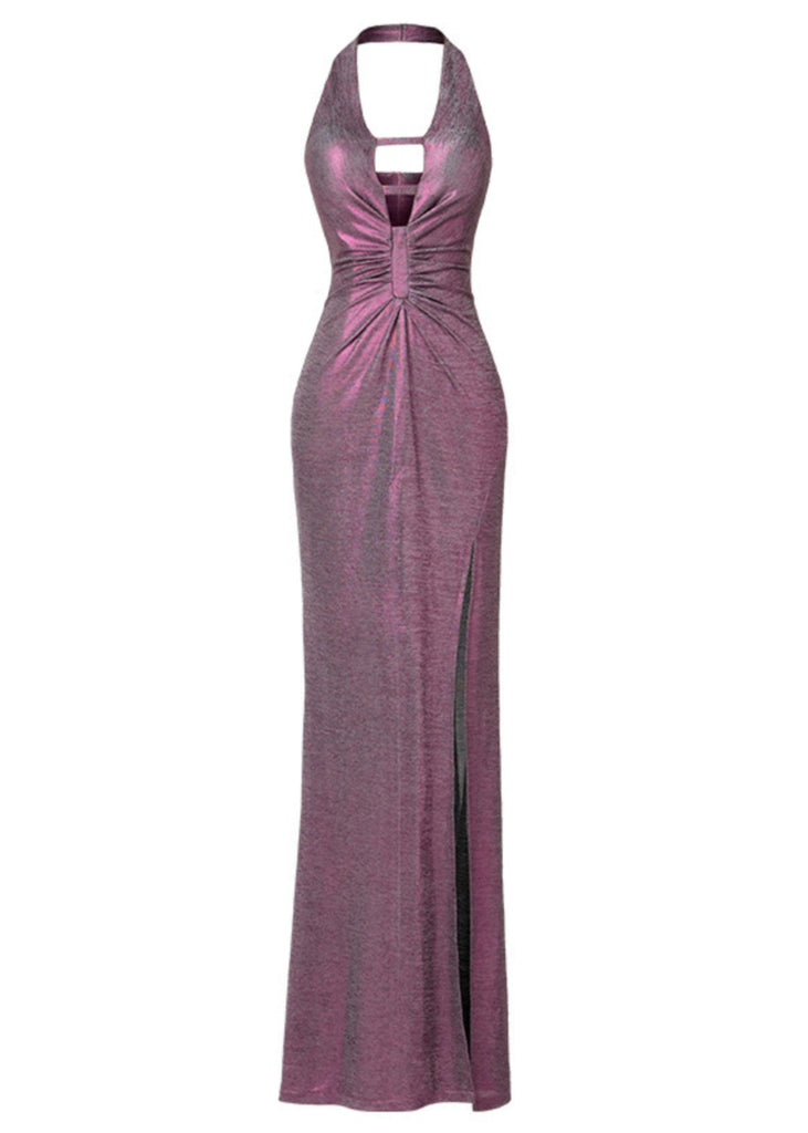 Vintage Purple Halter Side Open Party Dress Summer