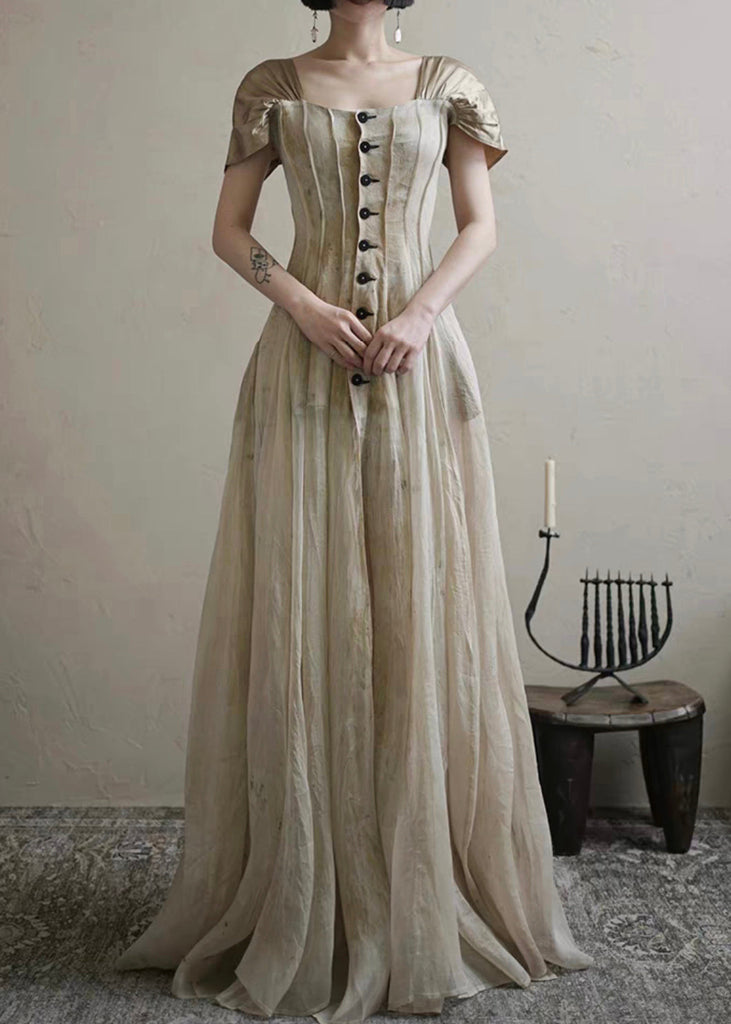 Square Button Collar Summer Vintage Long Dress