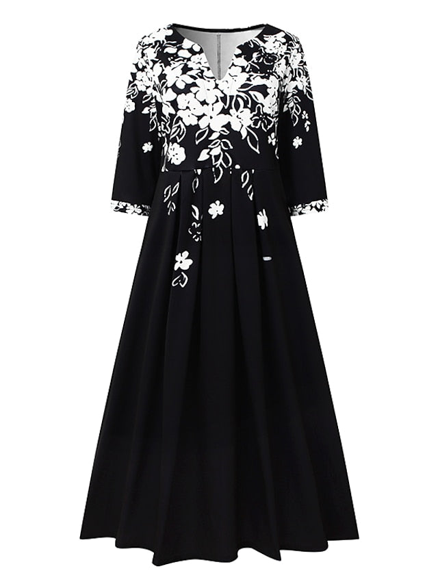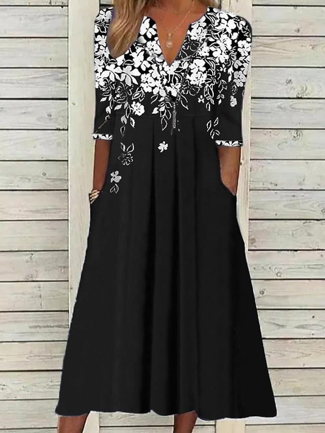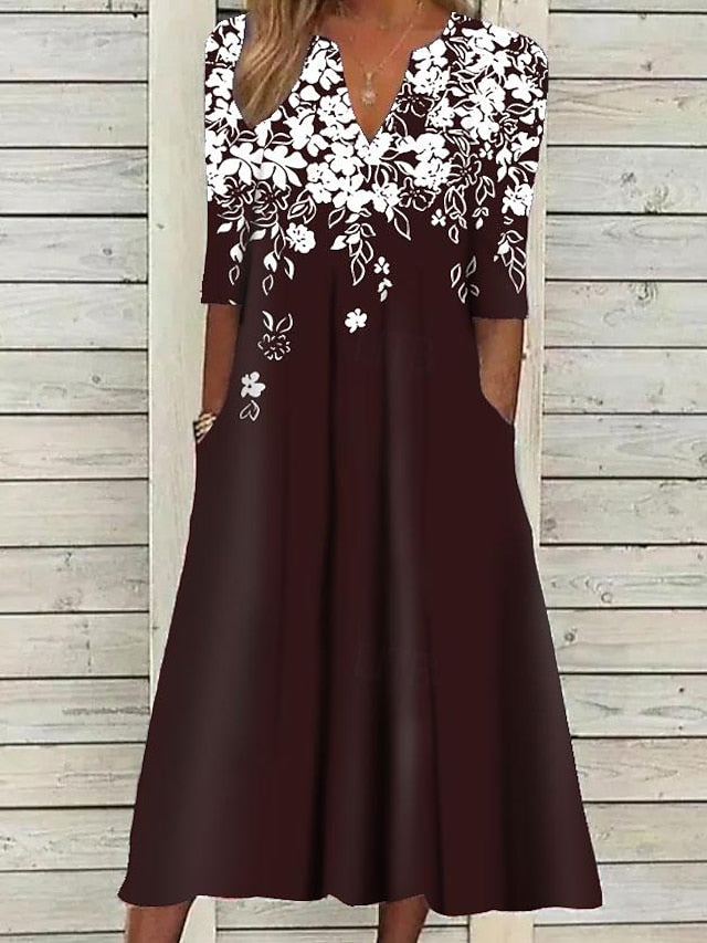 Women's Midi Dress Tunic Dress Floral Pocket V Neck Midi
