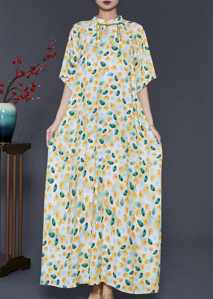 Vintage Apricot Tasseled Print Cotton Dress Summer SD1018