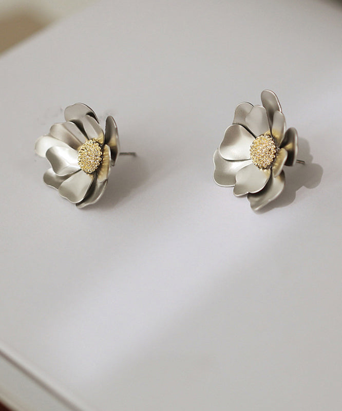 2024 New Gold Sterling Silver Overgild Floral Stud Earrings QQ049