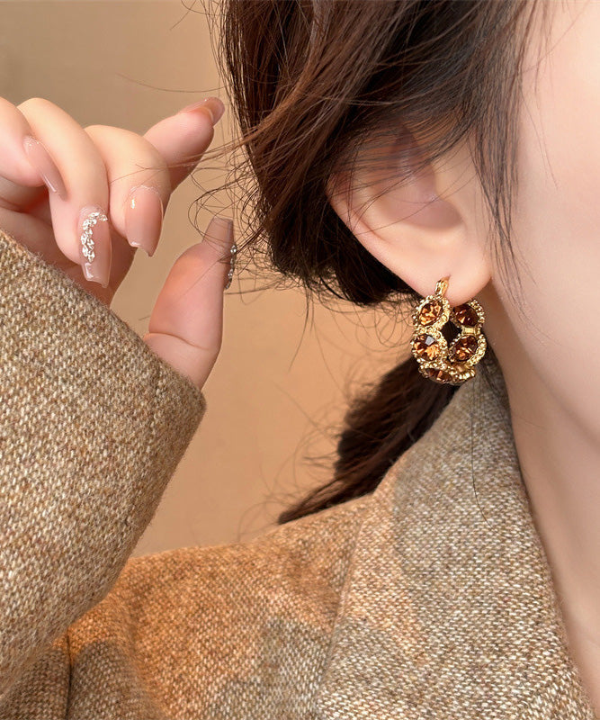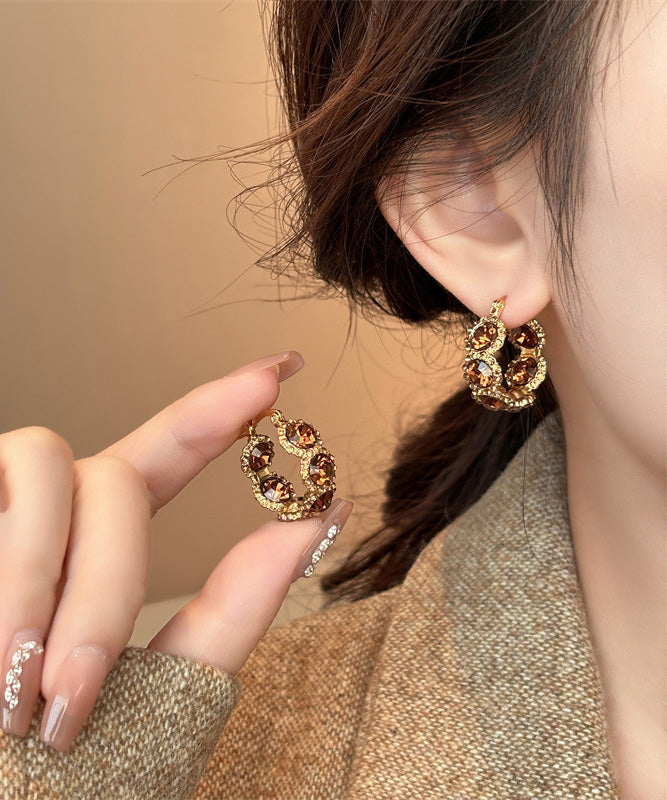 Art Coffee Sterling Silver Alloy Crystal Zircon Hoop Earrings QJ041