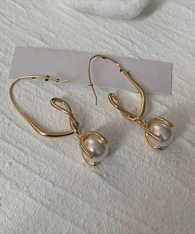 Art Gold Metal Overgild Pearl Hoop Earrings YD014