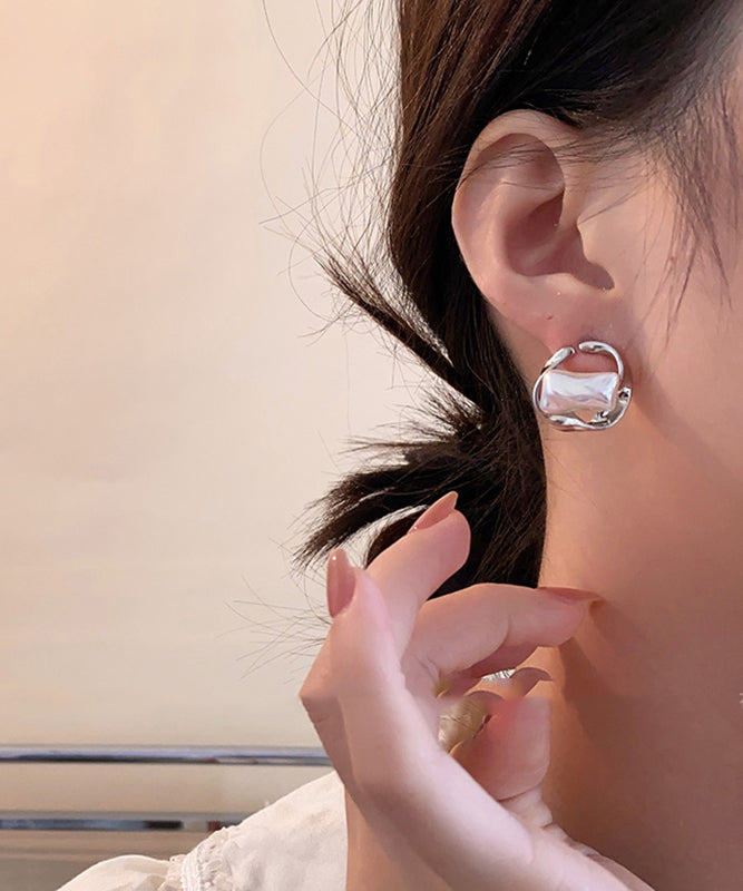 Beautiful Silk Copper Pearl Geometry Hoop Earrings QQ015