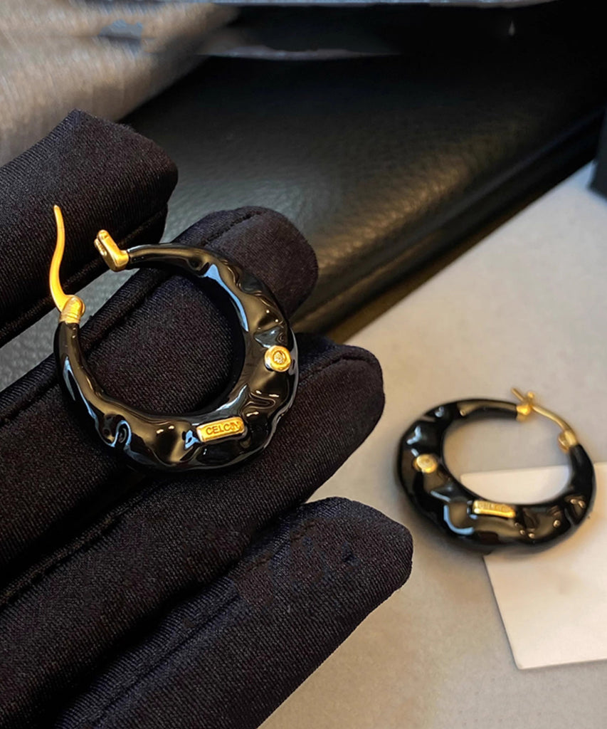 Elevate your style with these stunning Boho Black Enamel Drop Glaze Hoop Earrings, crafted from luxurious copper alloy. The elegant C shape and glaze detailing add a touch of sophistication to any outfit, making these earrings a must-have for those with a taste for exclusive, premium fashion.