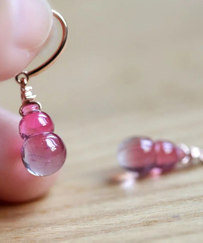 Boho Purple Red Sterling Silver Overgild Crystal Gourd Drop Earrings AC1041
