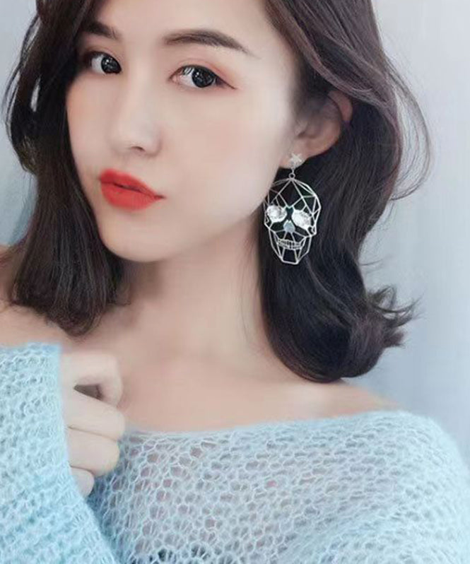 Boutique Black Metal Zircon Human Skeleton Hollowing Out Drop Earrings ZZ016
