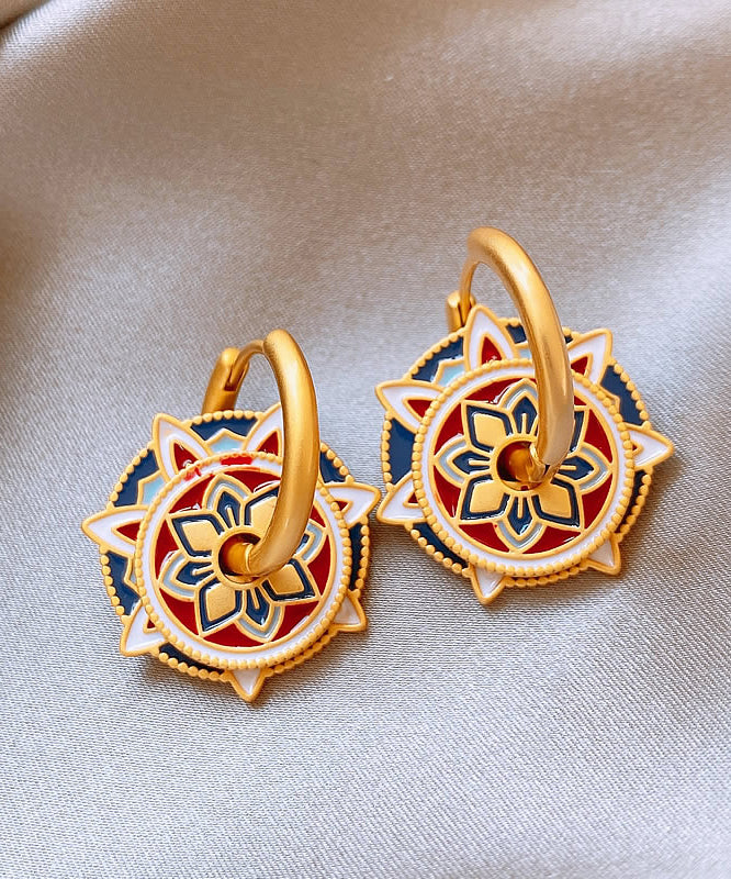 Chinese Style Gold Sterling Silver Overgild Hoop Earrings II013