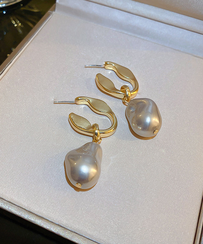 Classy Gold Copper Pearl Asymmetric Drop Earrings QJ049