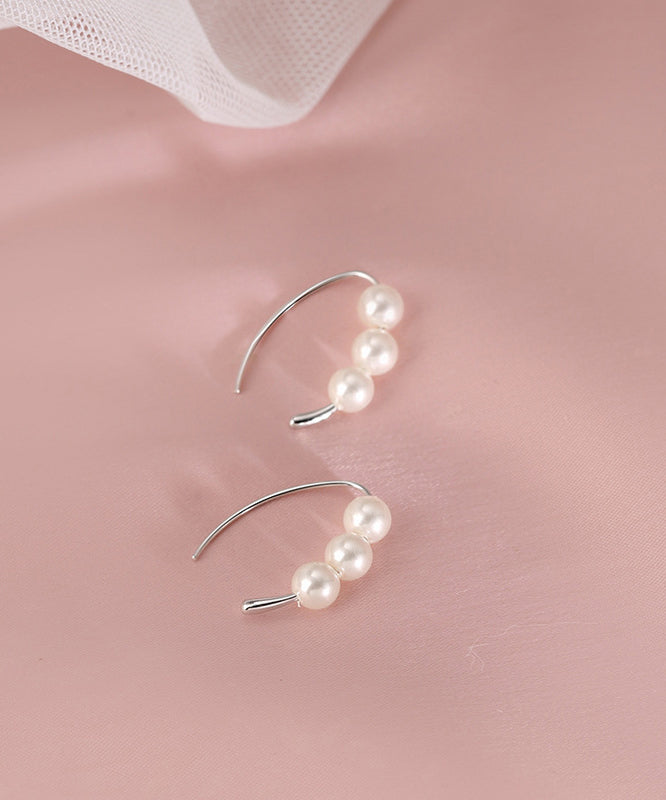 Classy Silk Sterling Silver Pearl Hoop Earrings YD020