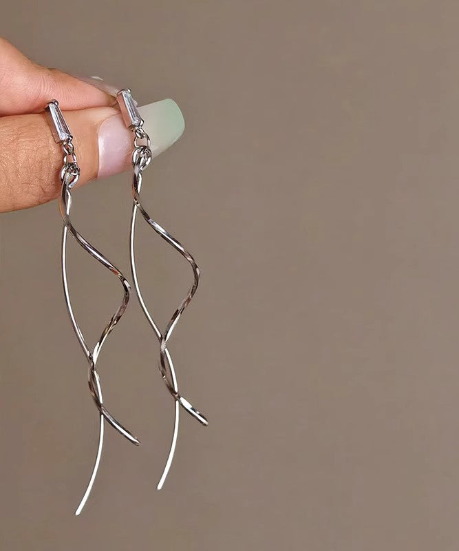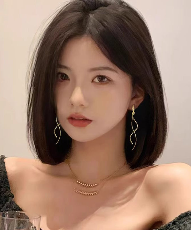Copper Line Skinny Drop Earrings Gold Tassel