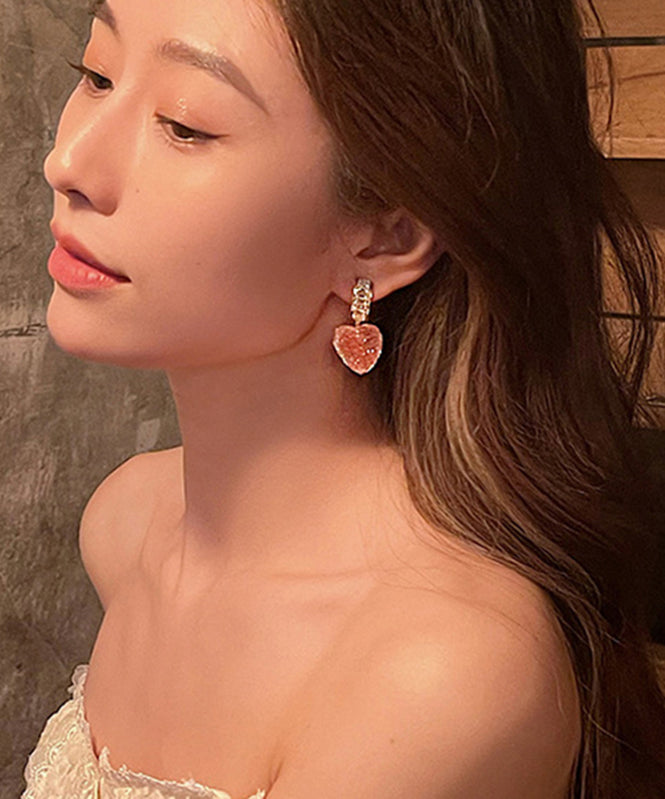 Cute Pink Copper Alloy Peach Heart Drop Earrings RB027