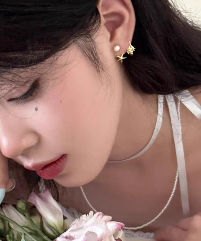 DIY Gold Copper Overgild Pearl Sea Star Conch Stud Earrings
