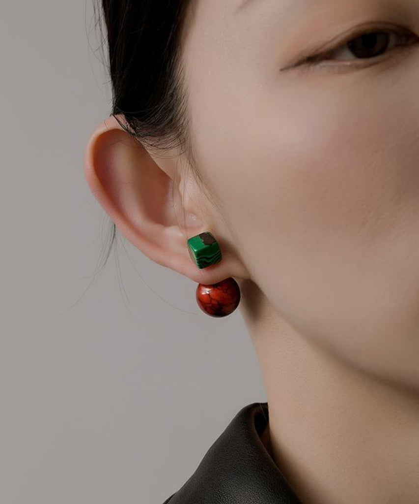 Earrings Art Colorblock Overgild Copper Gem Drop Stone FashionChic