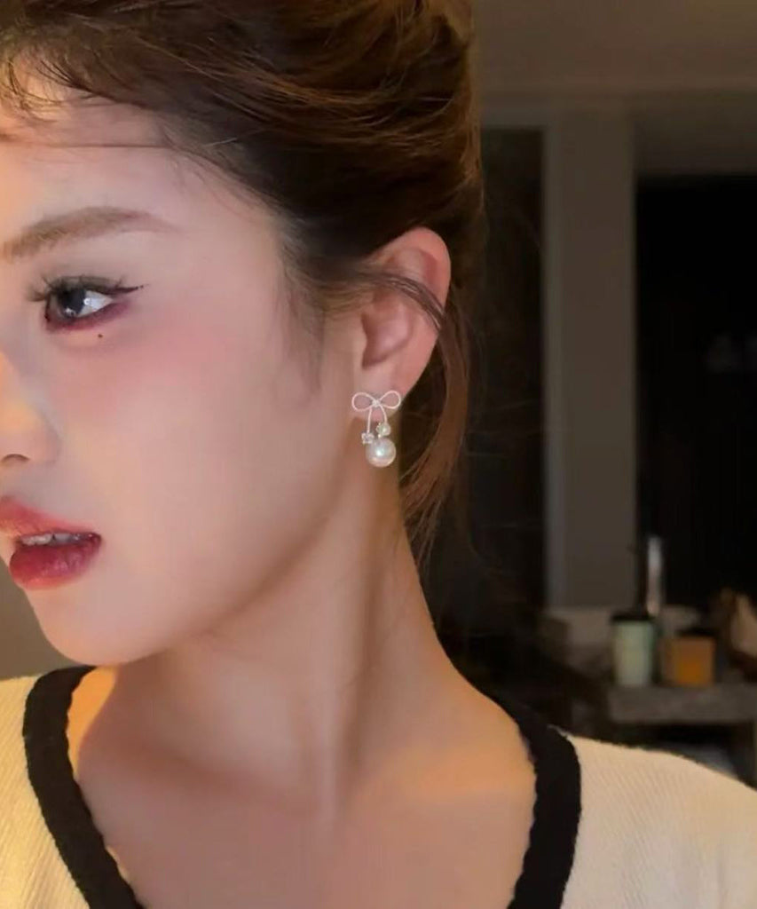 Earrings White Sterling Bow Alloy Drop Beautiful Pearl Silver