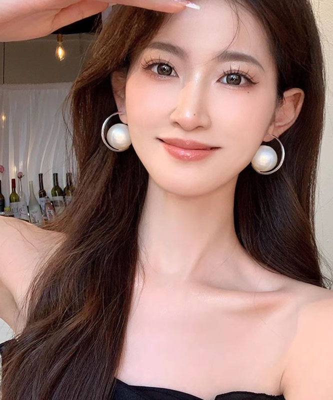 Elegant Gold Sterling Silver Alloy Pearl Hoop Earrings ZZ037
