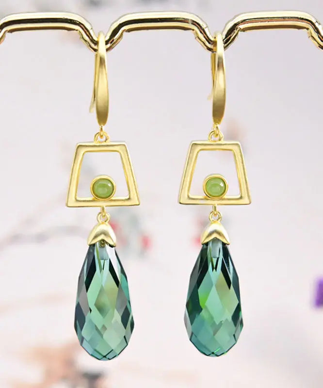 Sterling Silver Overgild Inlaid Crystal Jade Drop Earrings