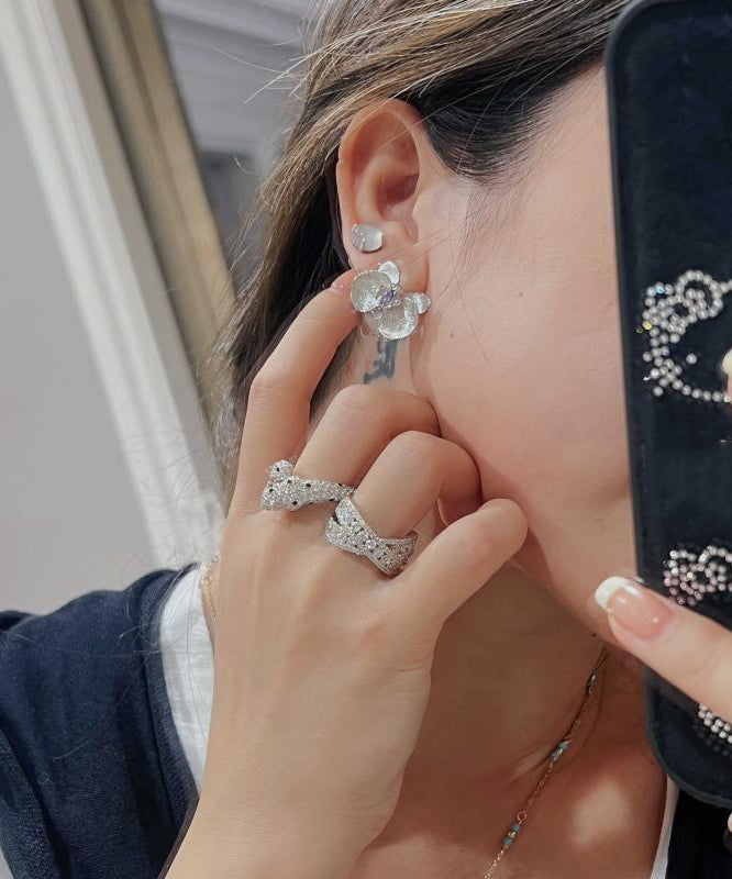 Fine Purple Sterling Silver Crystal Butterfly Orchid Stud Earrings AC1062