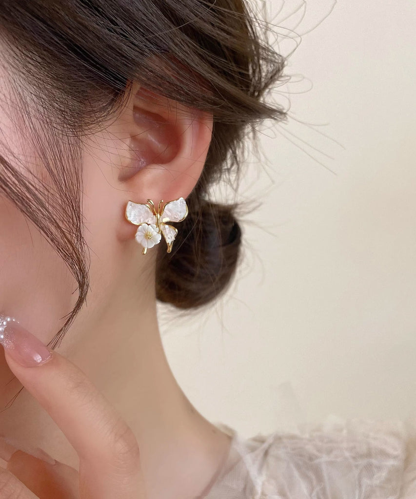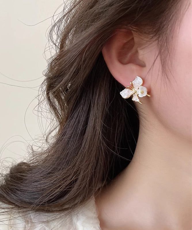 Original Design Blue Sterling Silver Overgild Shell Floral Butterfly Stud Earrings