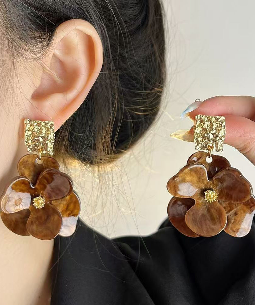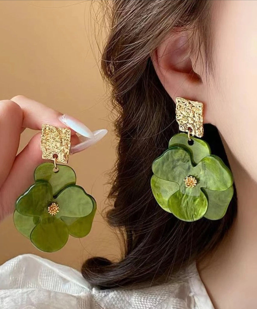 Original Design Green Acrylic Floral Drop Earrings EY004