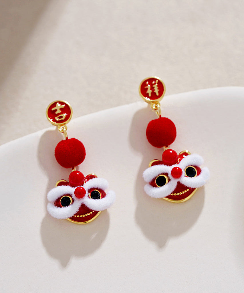Every product is unique, just like you. If you're looking for a product that fits the mold of your life, the Original Design Red Copper Orange Silk Velvet Lion Dance Drop Earrings TS013 is for you.