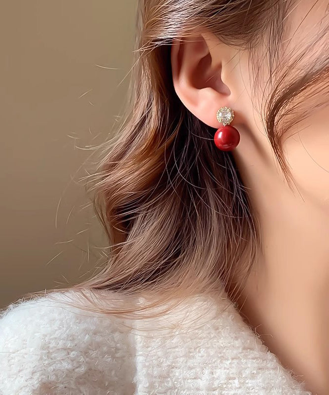 Original Red Copper Alloy Zircon Pearl Stud Earrings ET027