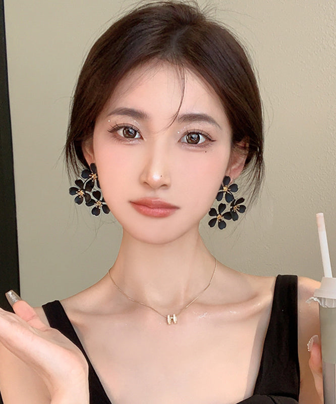 Oversize Black Sterling Silver Alloy Floral Stud Earrings ET018