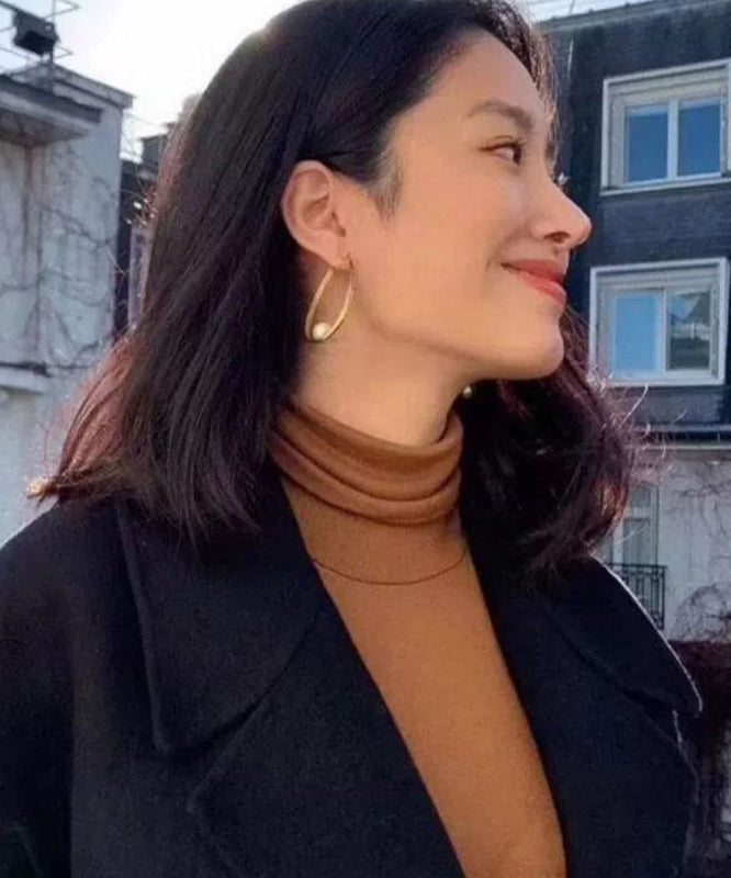 Oversize Gold Copper Overgild Elliptical Pearl Letter Hoop Earrings QU043