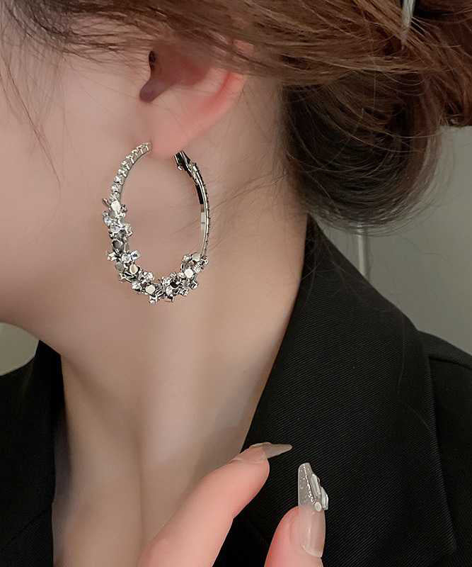 Oversize Silk Sterling Silver Alloy Zircon Sequins Hoop Earrings QJ050