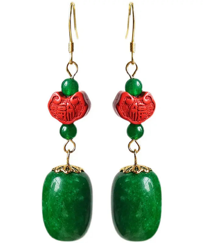 Add a pop of color to your outfit with these playful Sterling Silver Jade Cinnabar Drop Earrings. Crafted with genuine jade and cinnabar stones, these unique earrings are sure to catch some attention. Perfect for any occasion, these earrings are a must-have for any fashion-forward jewelry collection!