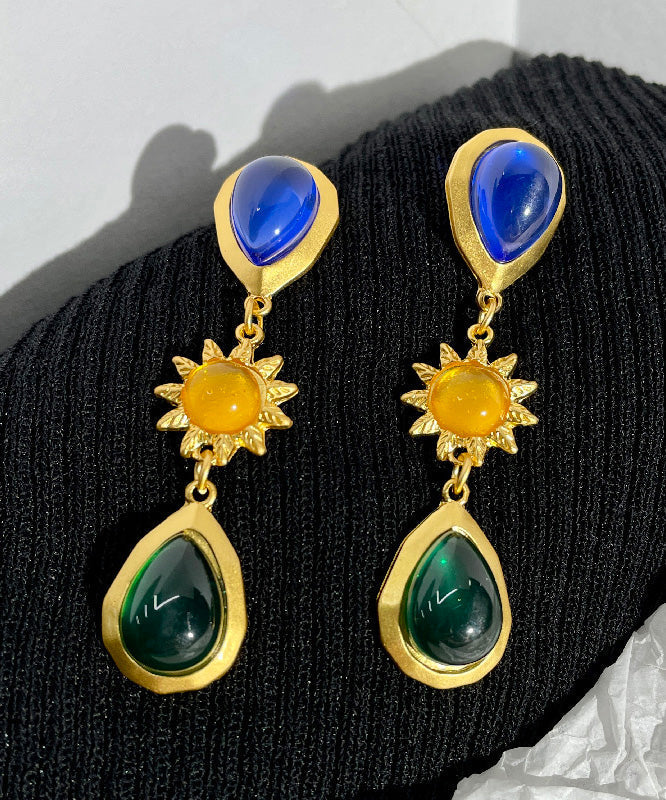 Retro Gold Sterling Silver Overgild Coloured Glaze Crystal Water Drop Drop Earrings WO002