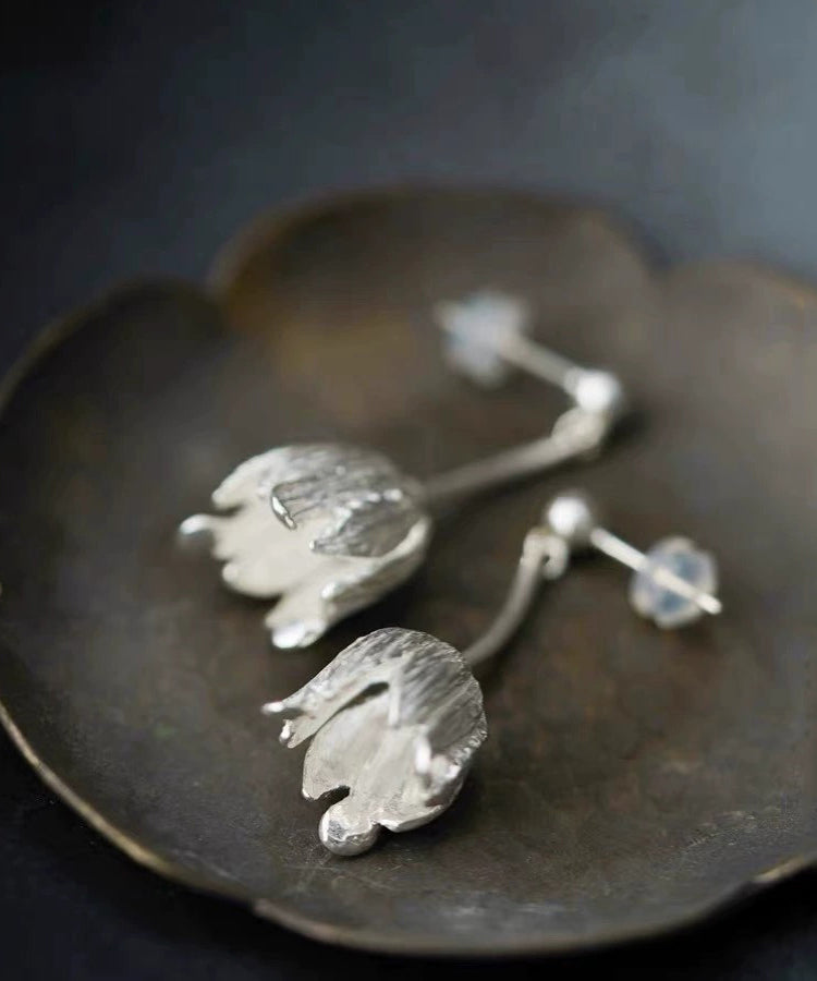 Retro Silk Sterling Silver Floral Drop Earring QQ055