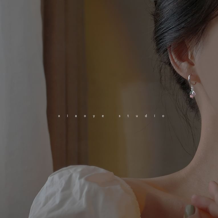 Rhinestone Earring Drop 925 Cherry Sterling Hoop Silver