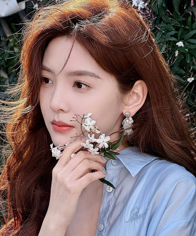 Beach White Copper Pearl Shell Tassel Drop Earrings