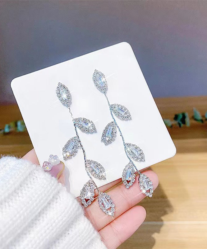 Skinny Gold Sterling Silver Overgild Leaf Tassel Drop Earrings WI007