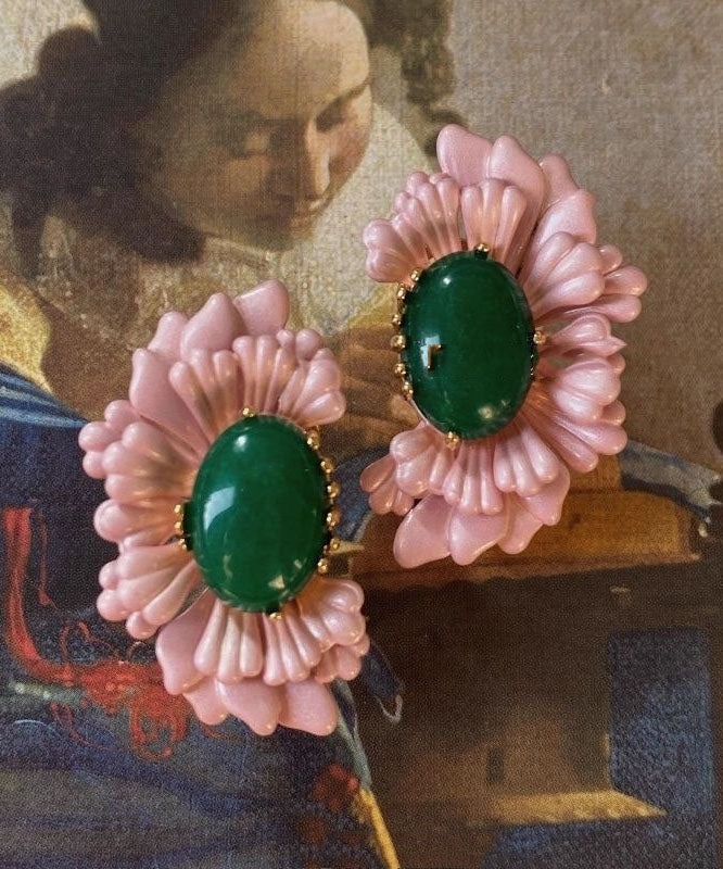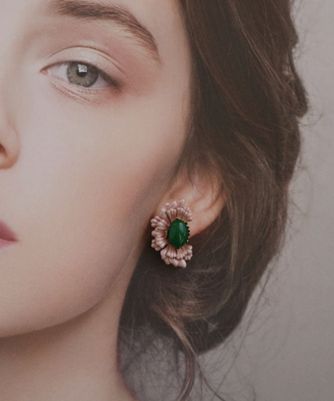 Retro Pink Sterling Silver Asymmetry Agate Stud Earrings