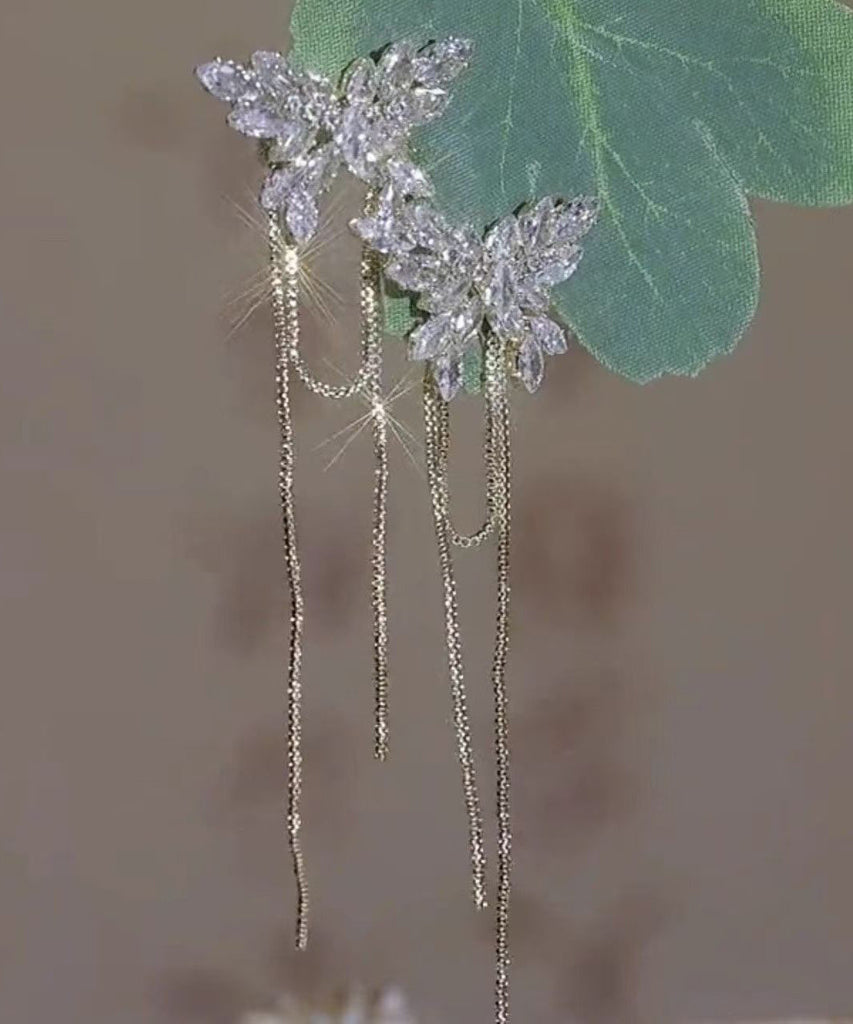 Style Gold Copper Overgild Inlaid Zircon Butterfly Tassel Drop Earrings EY009