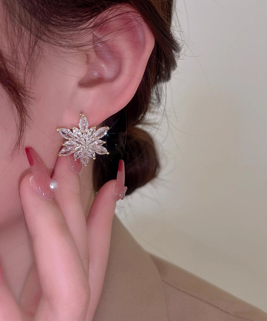 Stylish Gold Copper Overgild Zircon Crystal Snowflake Stud Earrings TS023