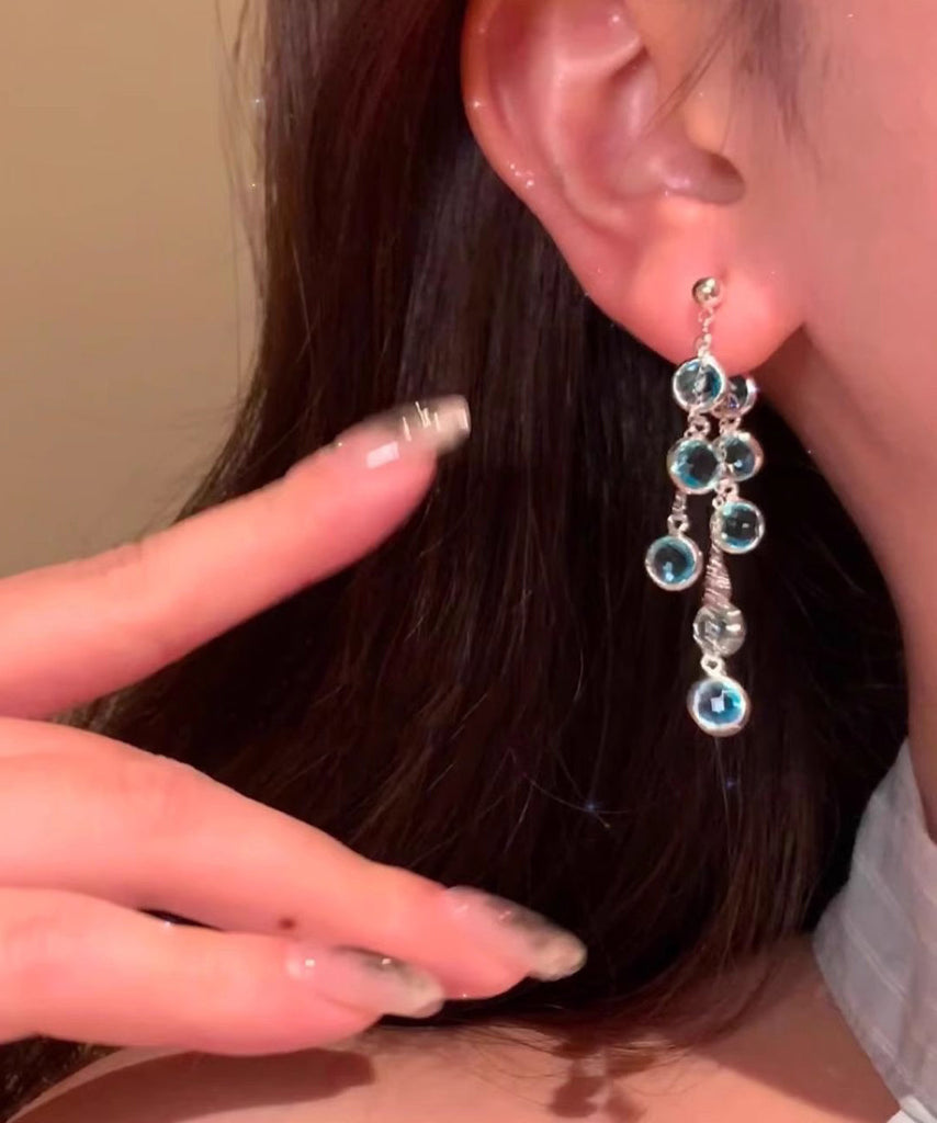 Stylish Blue Alloy Crystal Tassel Drop Earrings