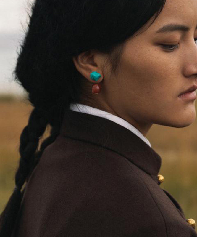 Retro Colorblock Sterling Silver Overgild Turquoise Agate Drop Earrings