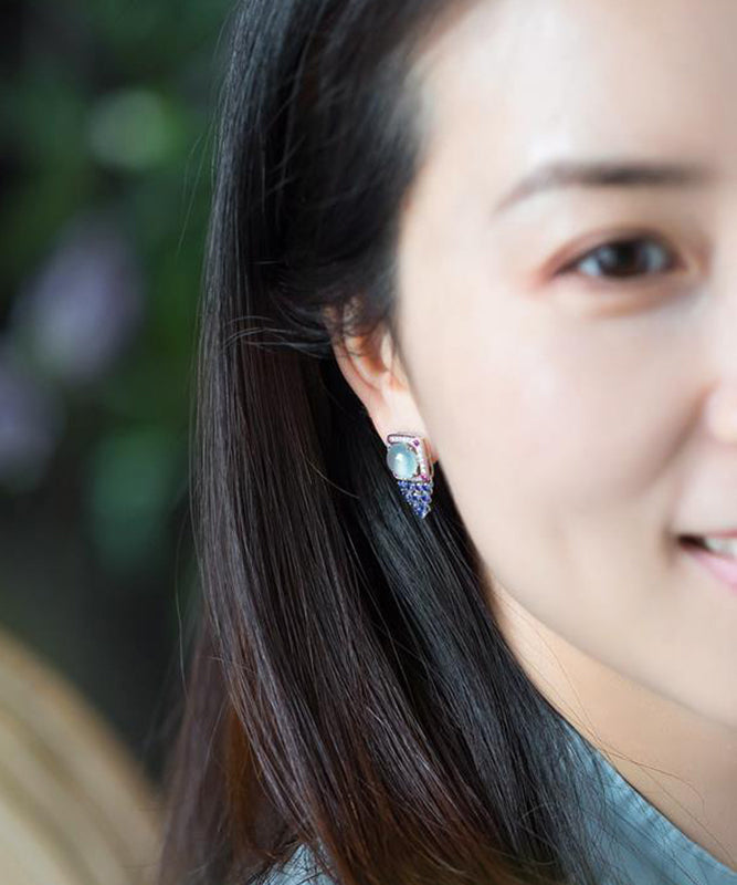Unique Blue Sterling Silver Inlaid Zircon Gem Stone Stud Earrings AC1032