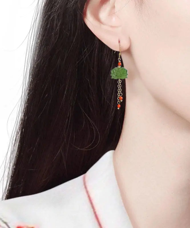 Every product is unique, just like you. If you're looking for a product that fits the mold of your life, the Sterling Silver Overgild Inlaid Gem Jade Drop Earrings is for you.