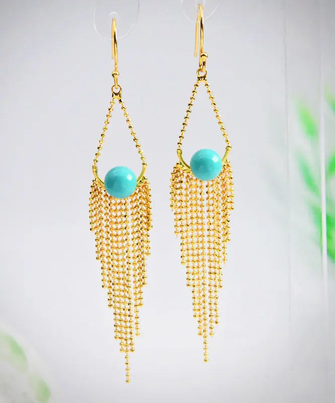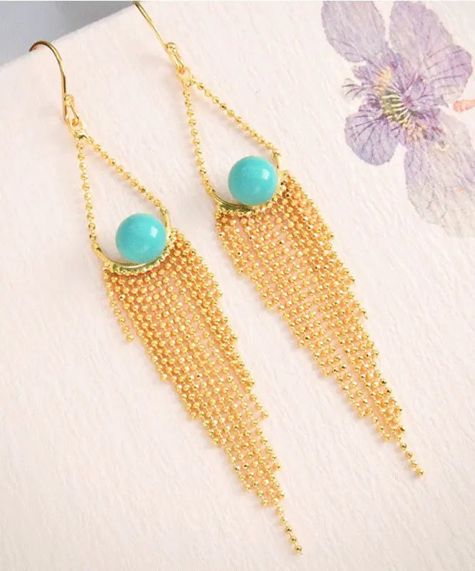 Sterling Silver Overgild Turquoise Tassel Drop Earrings