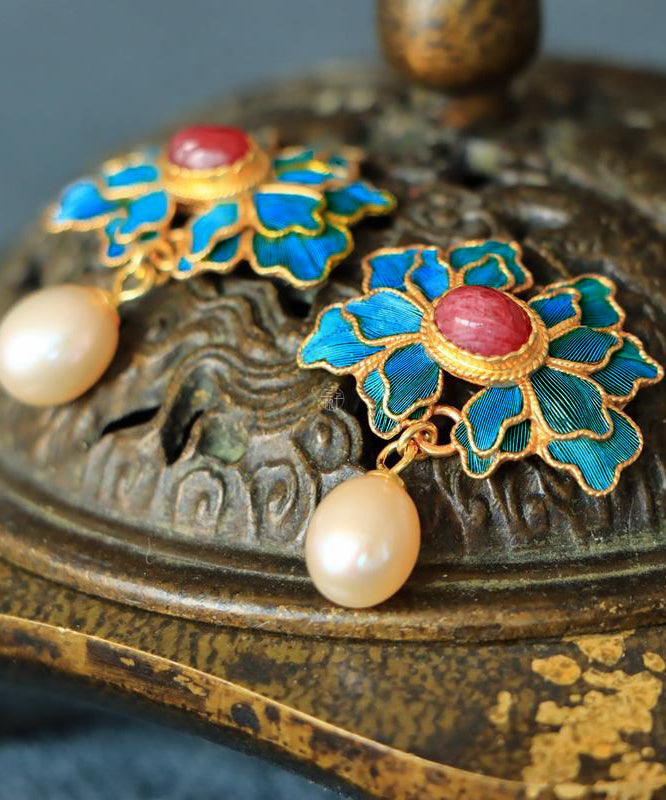 Experience timeless beauty with our Vintage Blue Sterling Silver Overgild Pearl Cloisonne Agate Drop Earrings. Crafted with exquisite attention to detail and luxurious materials, these stunning earrings are perfect for the sophisticated, discerning fashion connoisseur. Elevate your style with a touch of opulence.