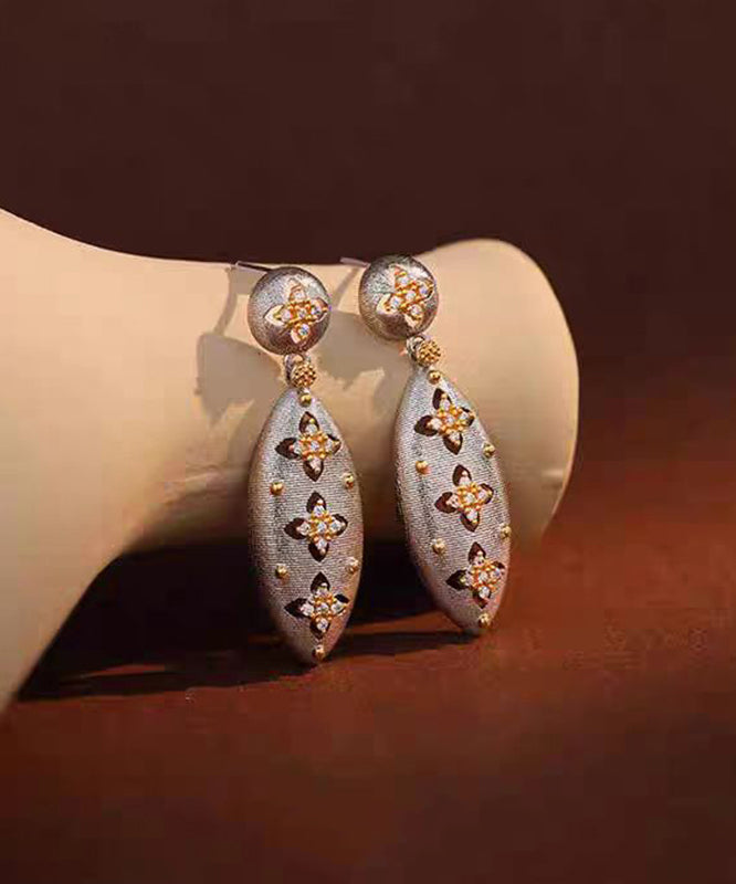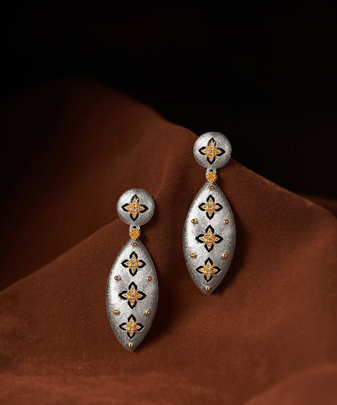 Vintage Silk Sterling Silver Four Leaf Clover Drop Earrings YD001