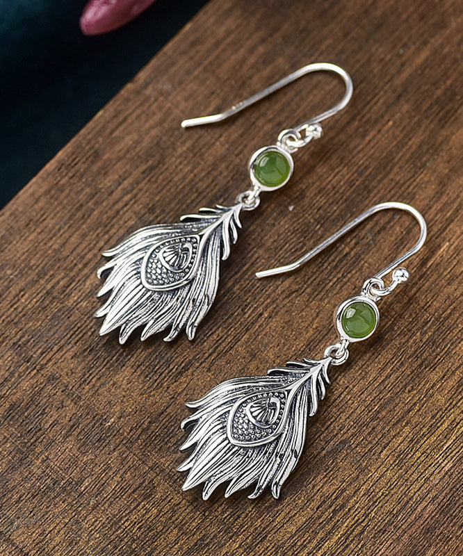 These earrings are made from vintage sterling silver and feature a beautiful jade feather design. Crafted with high-quality materials and intricate attention to detail, these earrings are a unique addition to any jewelry collection.