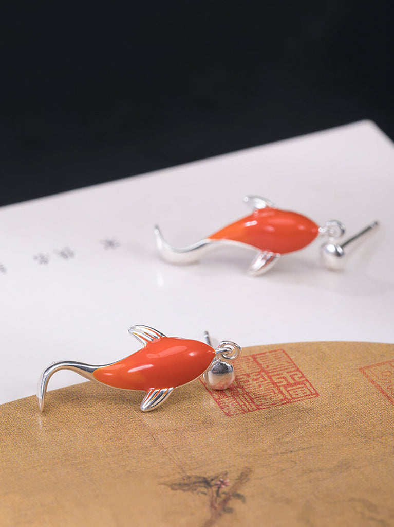 Women Casual Red Koi Sliver Pandent Earrings AI1023