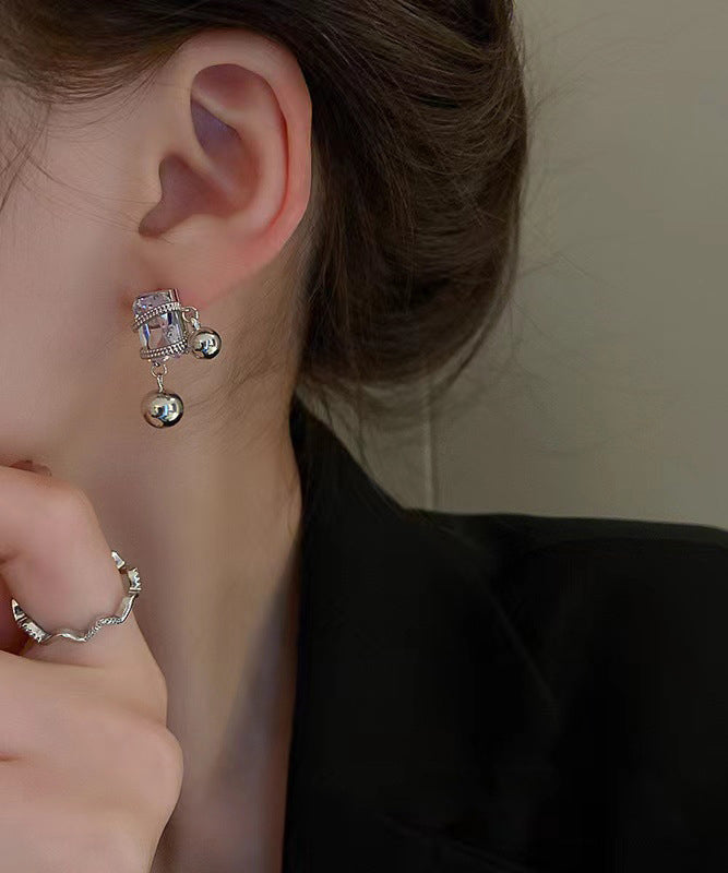 Crafted with grey alloy and adorned with zircon crystals, these drop earrings feature stunning gem stones that elevate any look.