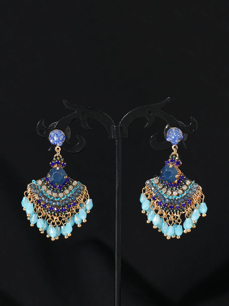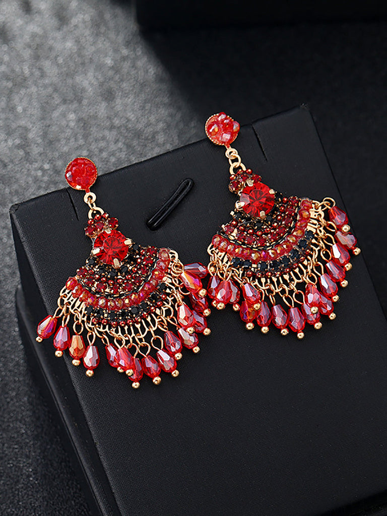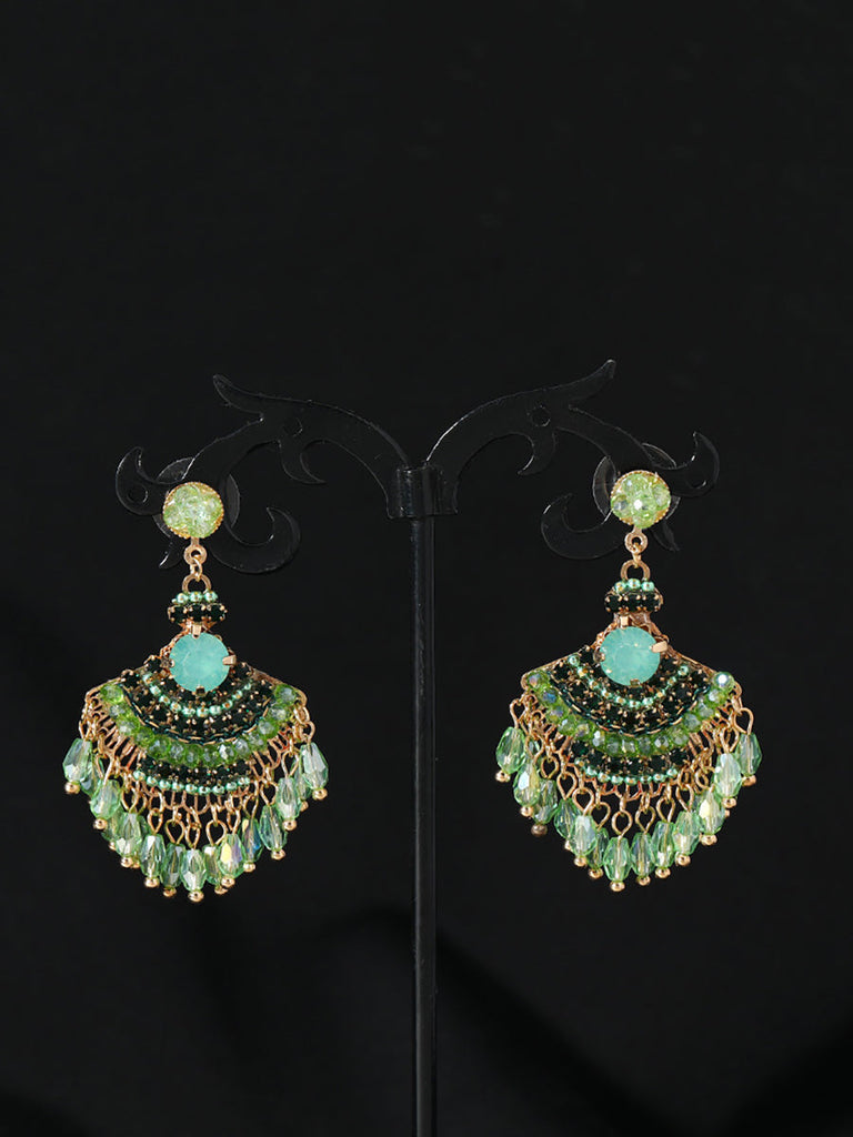 Women Vintage Crystal Tassel Fan Shape Earrings AS1028