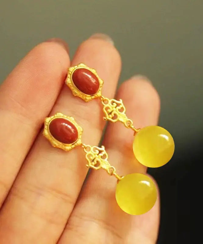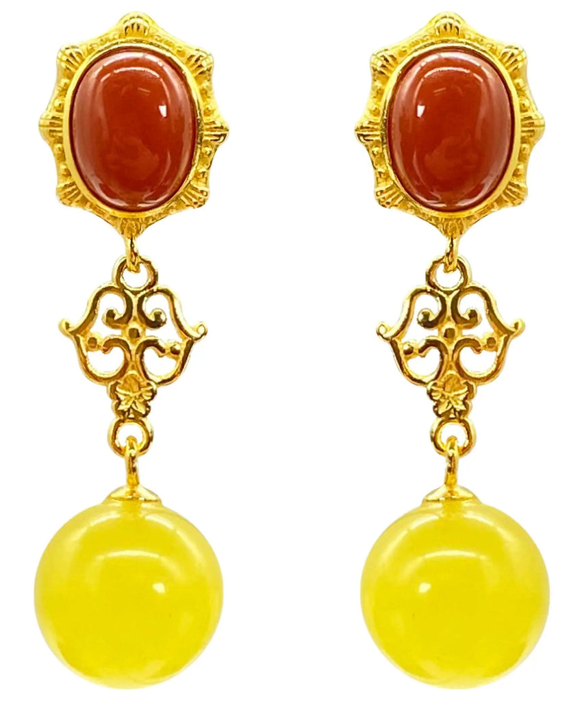 Sterling Silver Overgild Agate Beeswax Drop Earrings